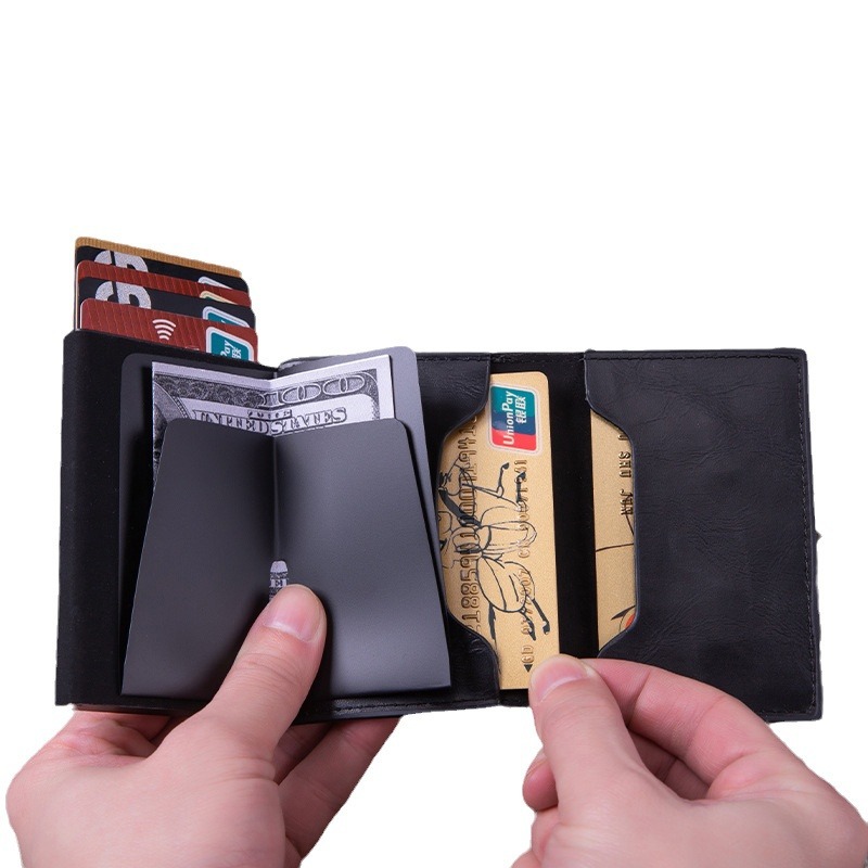 亚马逊热款金属防刷防磁RFID信用卡盒自动弹出卡套名片盒现货批发