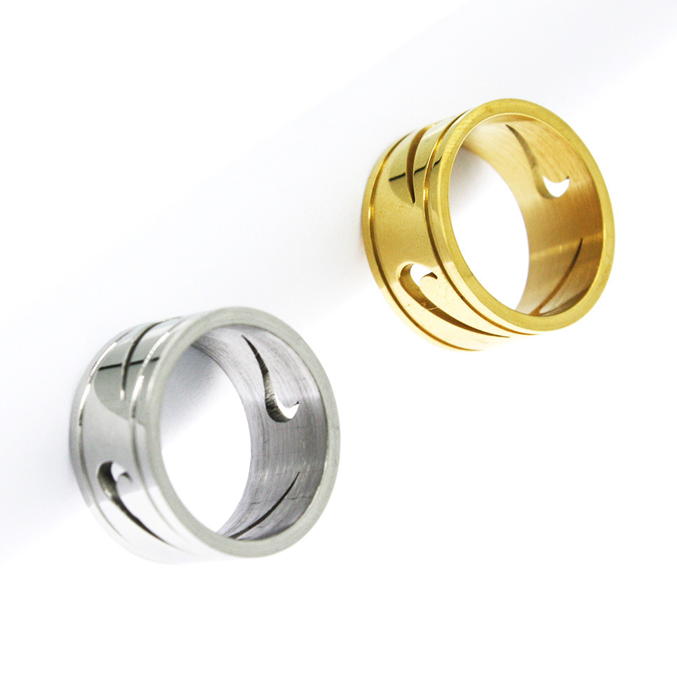 亚马逊跨境欧美不锈钢打勾戒指 镂空勾勾戒指个性时尚ins男士指环