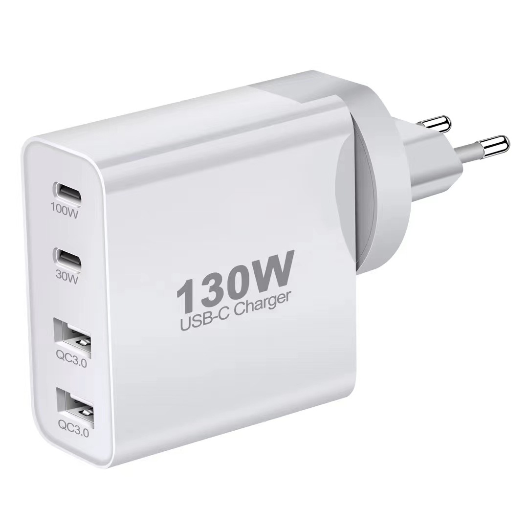 新款氮化镓充电头pd130w多口充电器折叠插头 电脑电源适配快充头.
