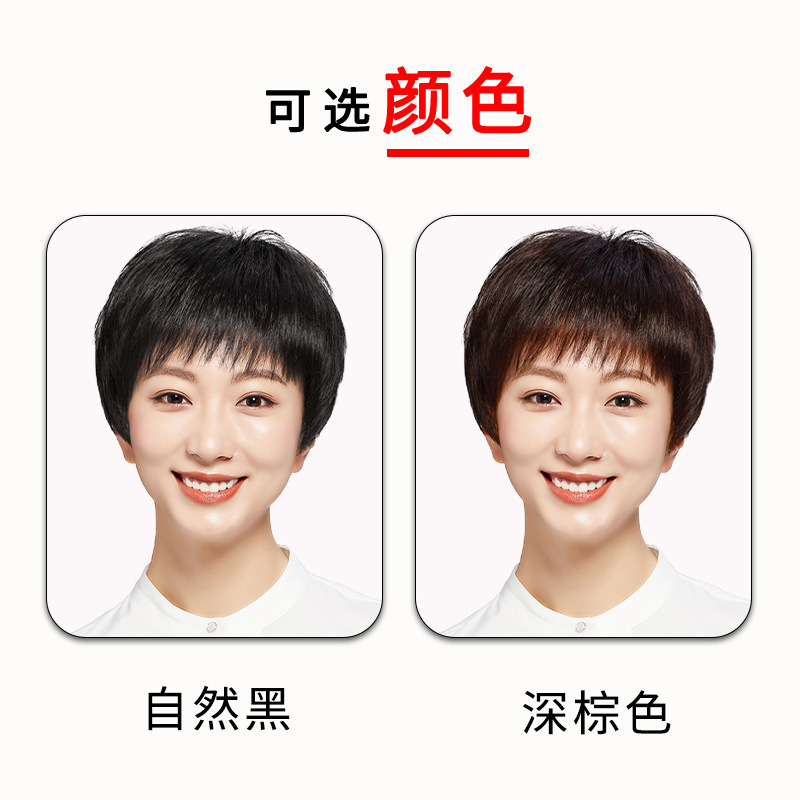 假发头套女短直发中老年真人发丝轻薄透气自然时尚妈妈款全头套