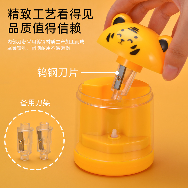 小老虎款电动卷笔刀儿童塑料转笔刀卡通削笔器学生单孔削笔机批发