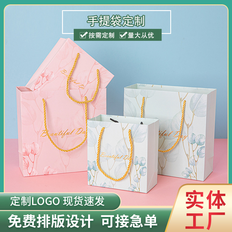 现货白卡纸袋烫金手提袋彩印纸袋购物袋礼品袋通用包装袋厂家批发