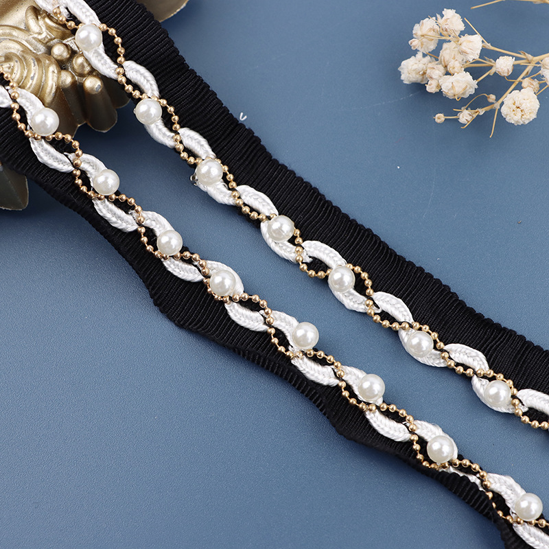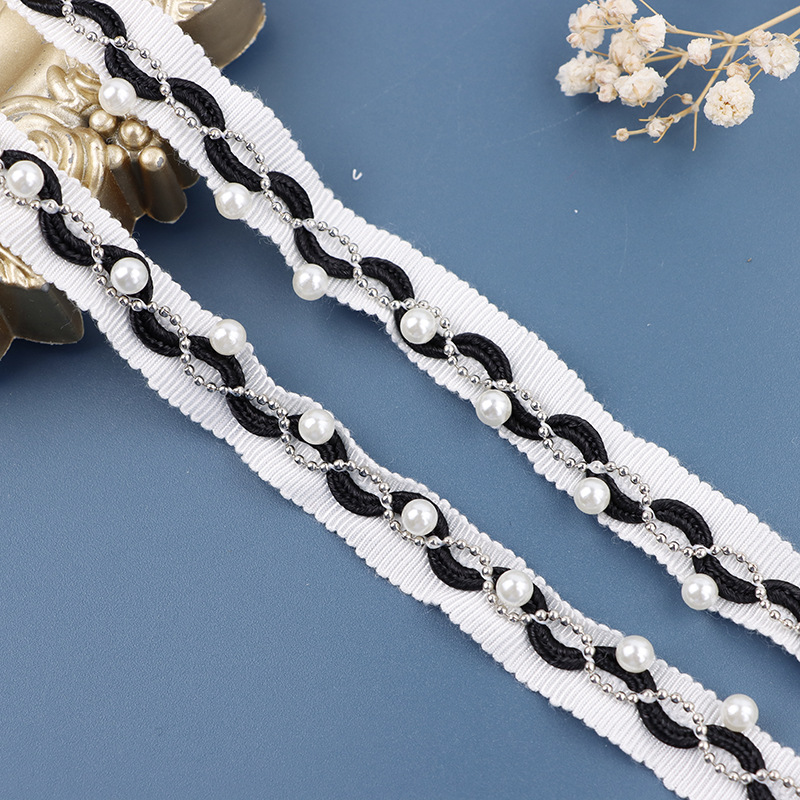 | 适用范围 | 毛毯流苏 | 规格型号 | 1.5白色帽带黑绳1.5金链白珠 |