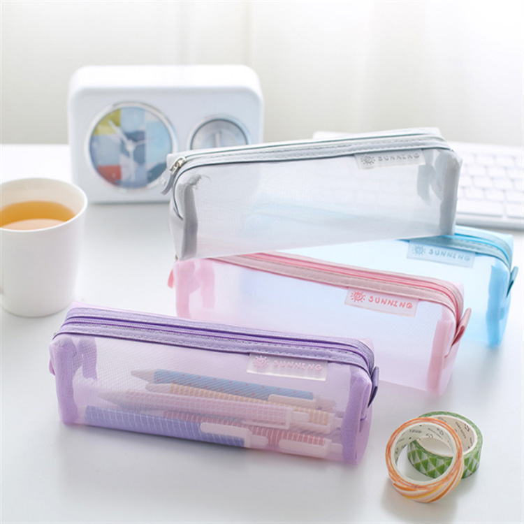专业生产 透明网纱简约清新可爱文具盒 男女高中初中小学生文具袋