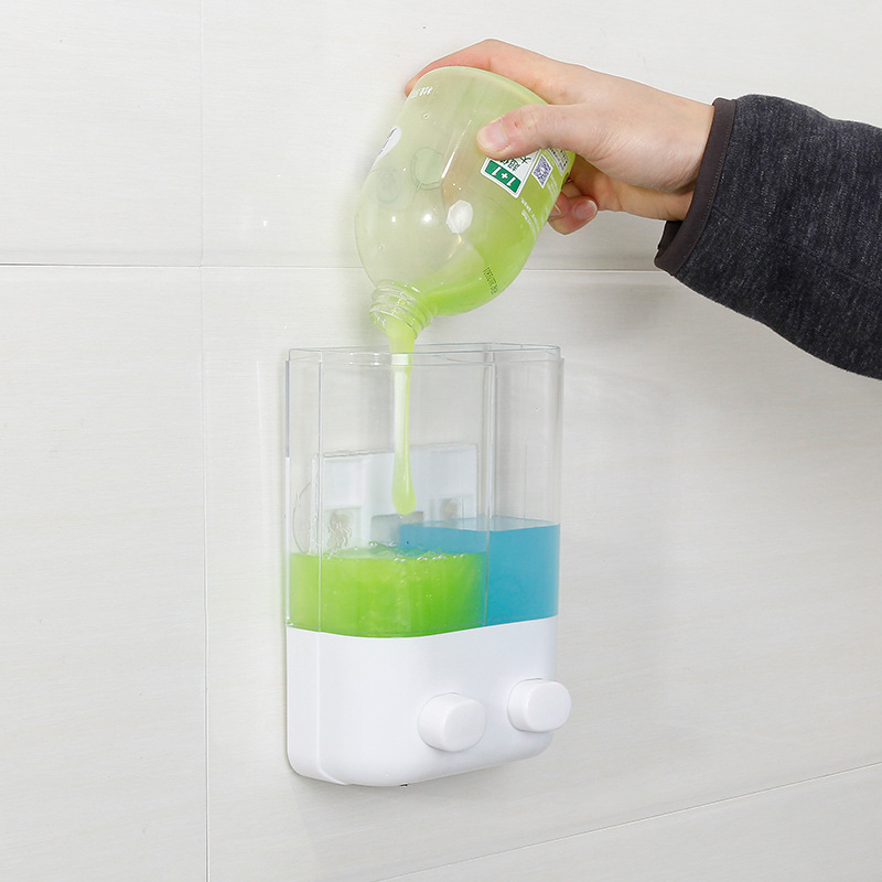 吸壁式手动按压式皂液器酒店卫浴洗手液透明双头厨房免打孔皂液器