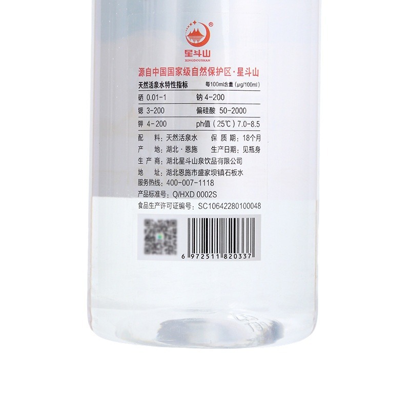 制作工艺星斗山恩施含硒锶矿泉水纯净母婴天然饮用活泉水488mlx24瓶整箱装