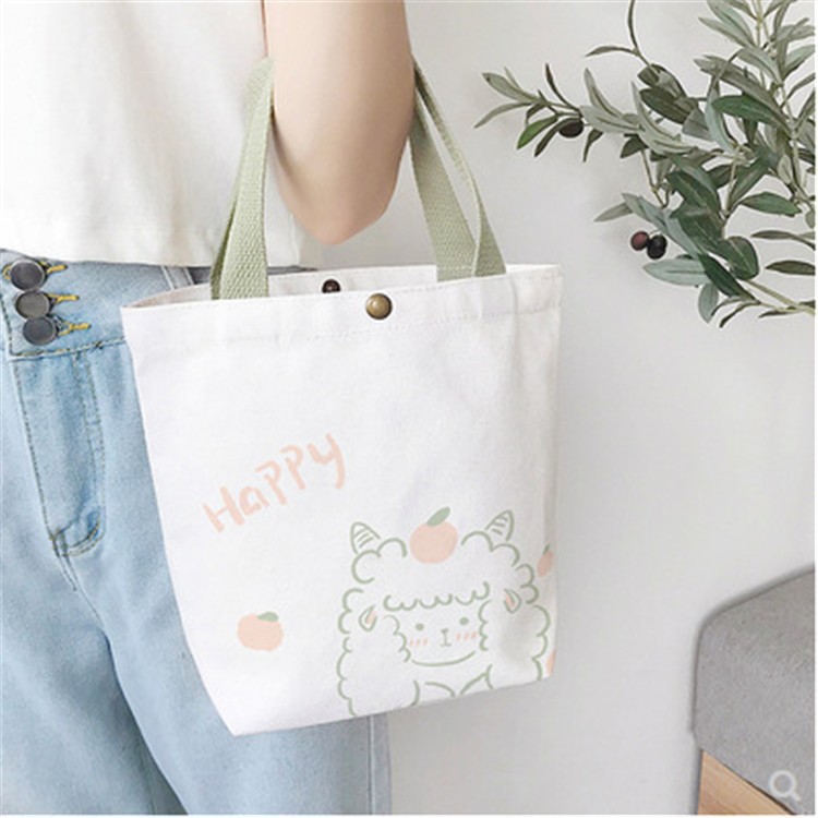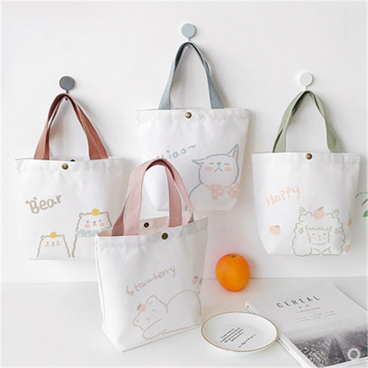 专业生产布艺通勤包 拉链动物印花白色软把化妆包 竖款方型帆布袋