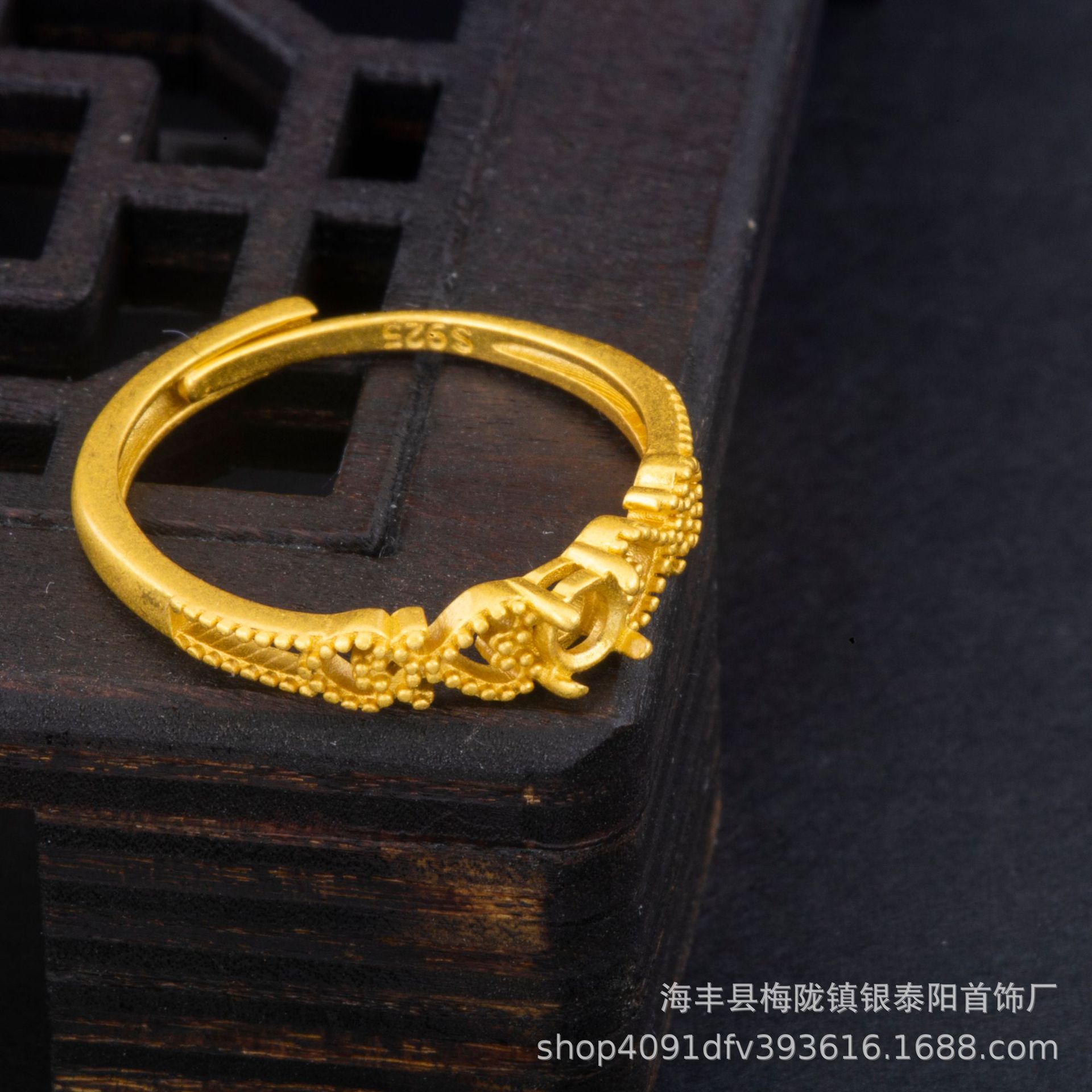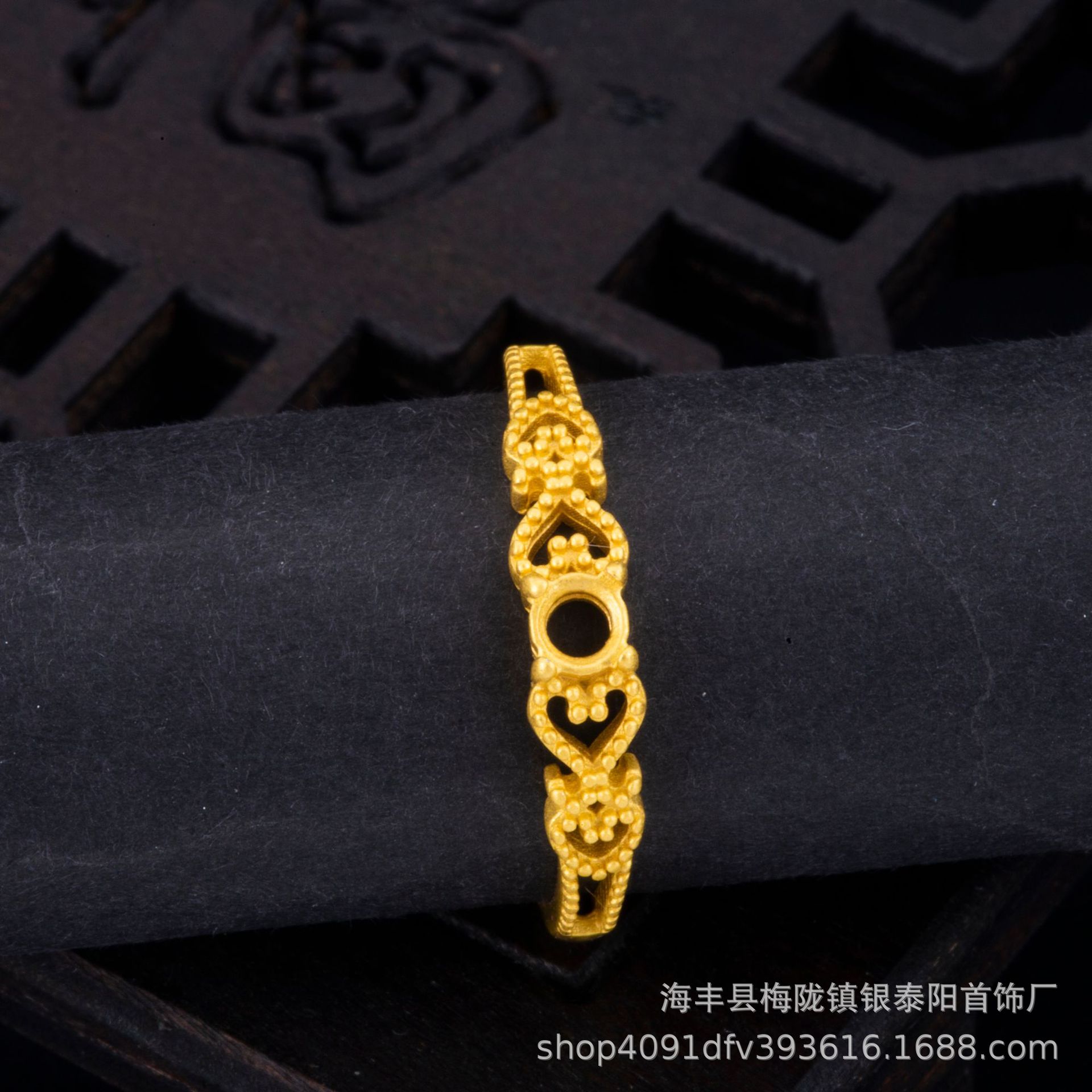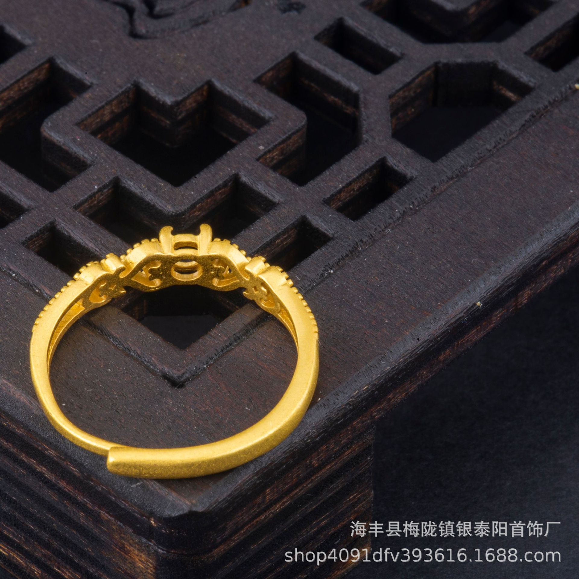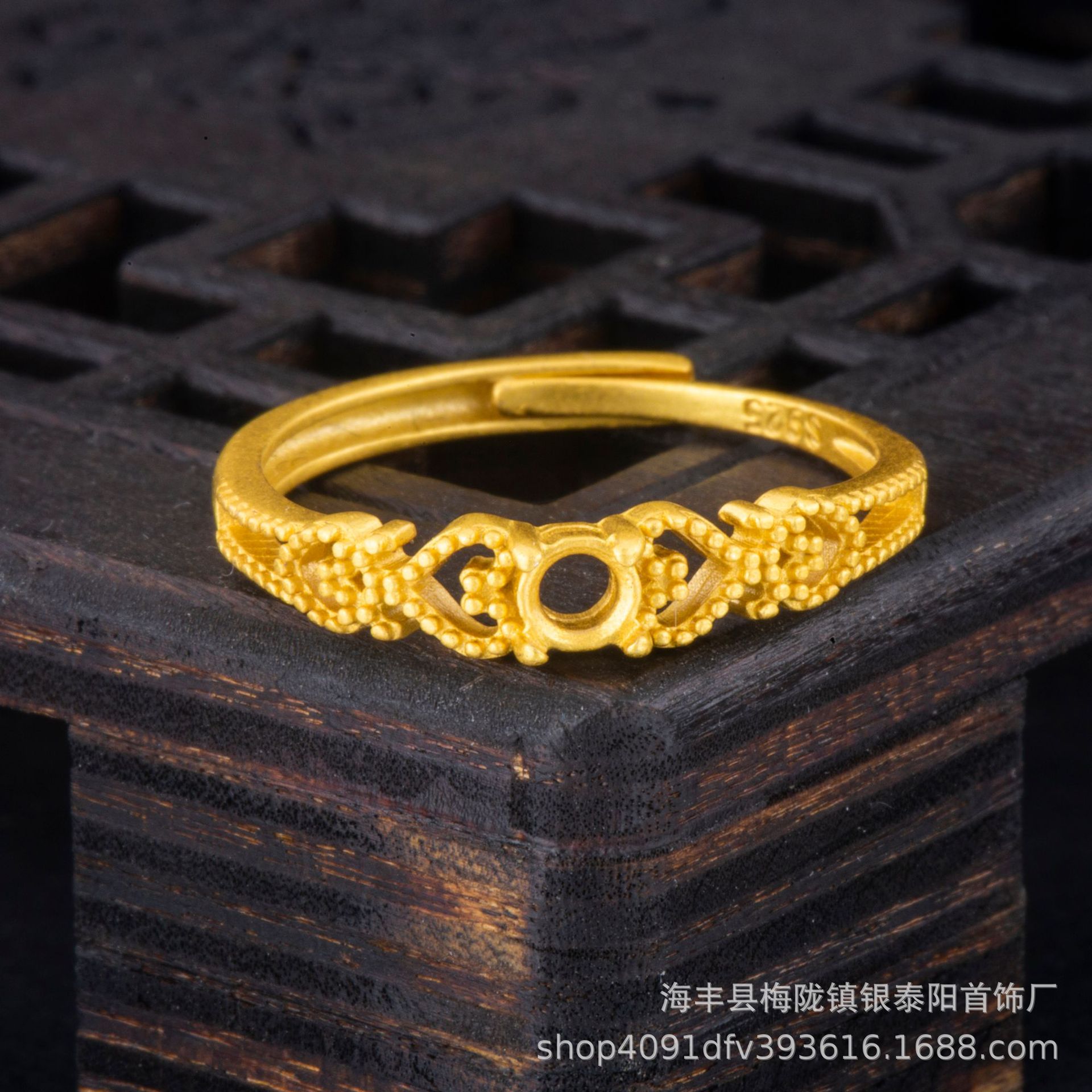 s925戒指银托精工简约时尚翡翠蛋面空托可调节未镶嵌戒托批发