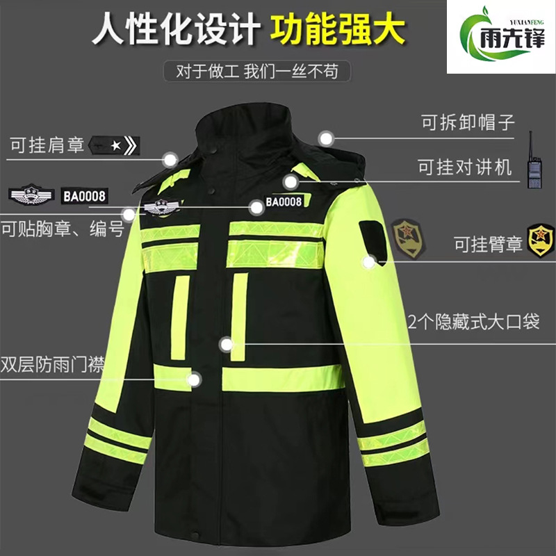 加棉加厚执勤雨衣反光棉服雨衣批发可拆卸内胆路政救援雨衣可印字