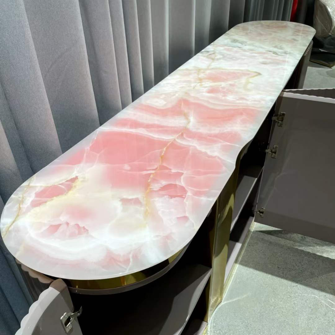 粉玉天然餐桌面板厨房大理石台面 阳台飘窗粉色玉石浴室墙面地板