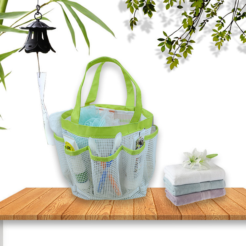 新款抽绳束口沙滩包 多功能八格网包 带扣女士收纳旅行手提洗漱包