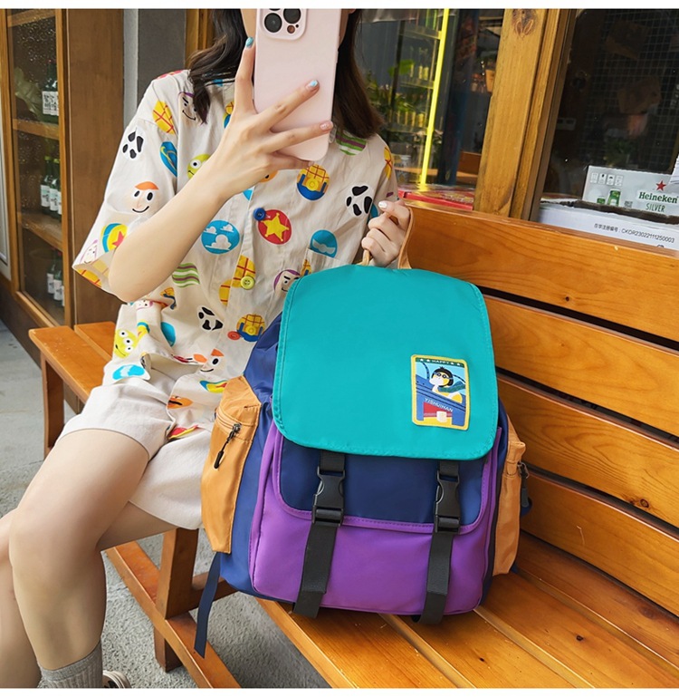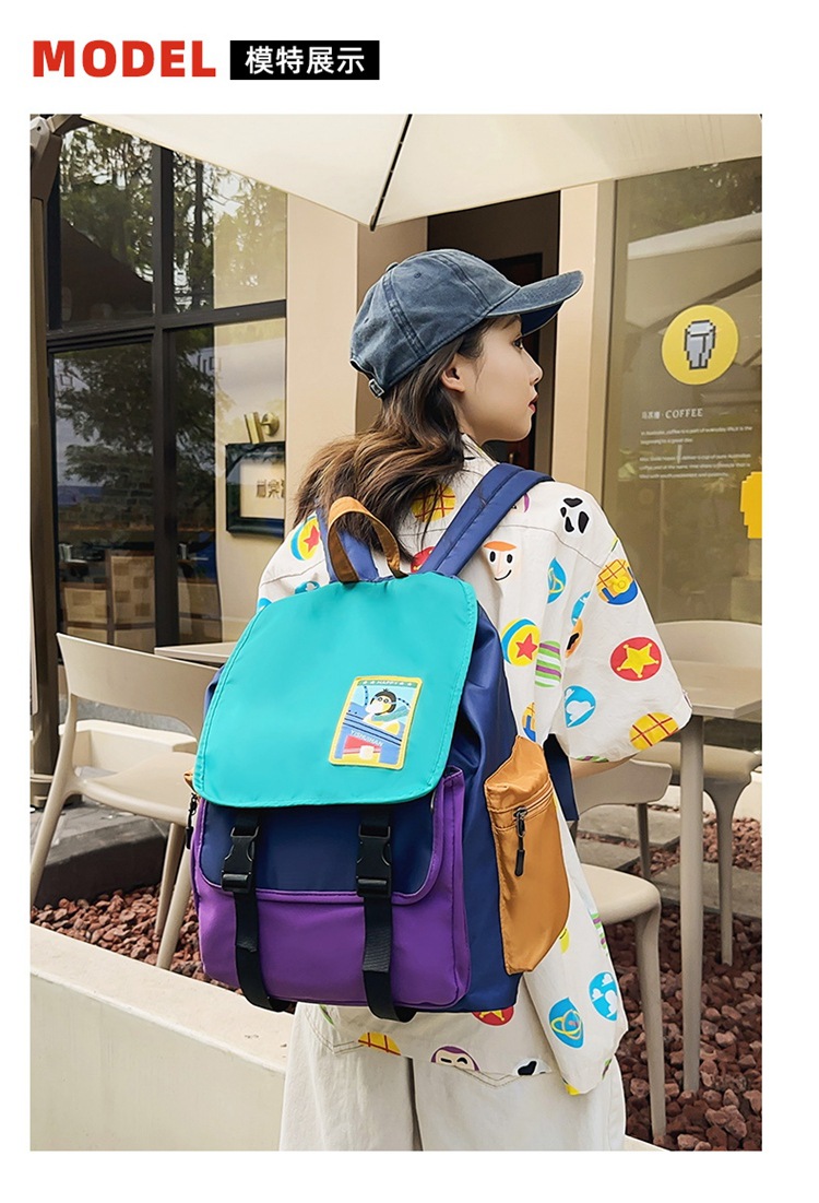 双肩包个性拼色大容量日系简约百搭洋气学生包女生旅行包书包减负