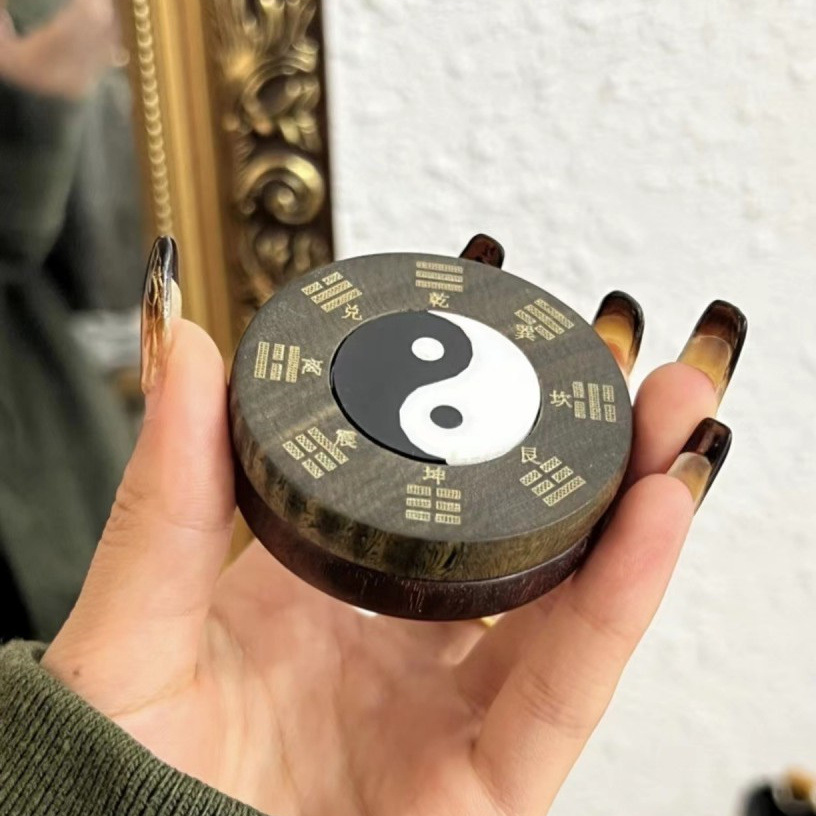 绿檀搭配小叶紫檀八卦转钱天然紫檀木手把近件文玩扭转乾坤