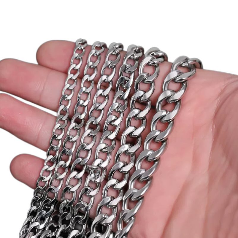 金色欧美首配饰品不锈钢六面磨链项链跨境嘻哈钛钢古巴链条男女士