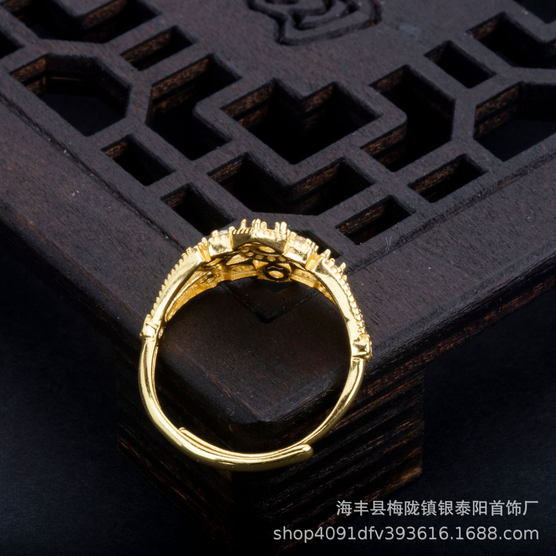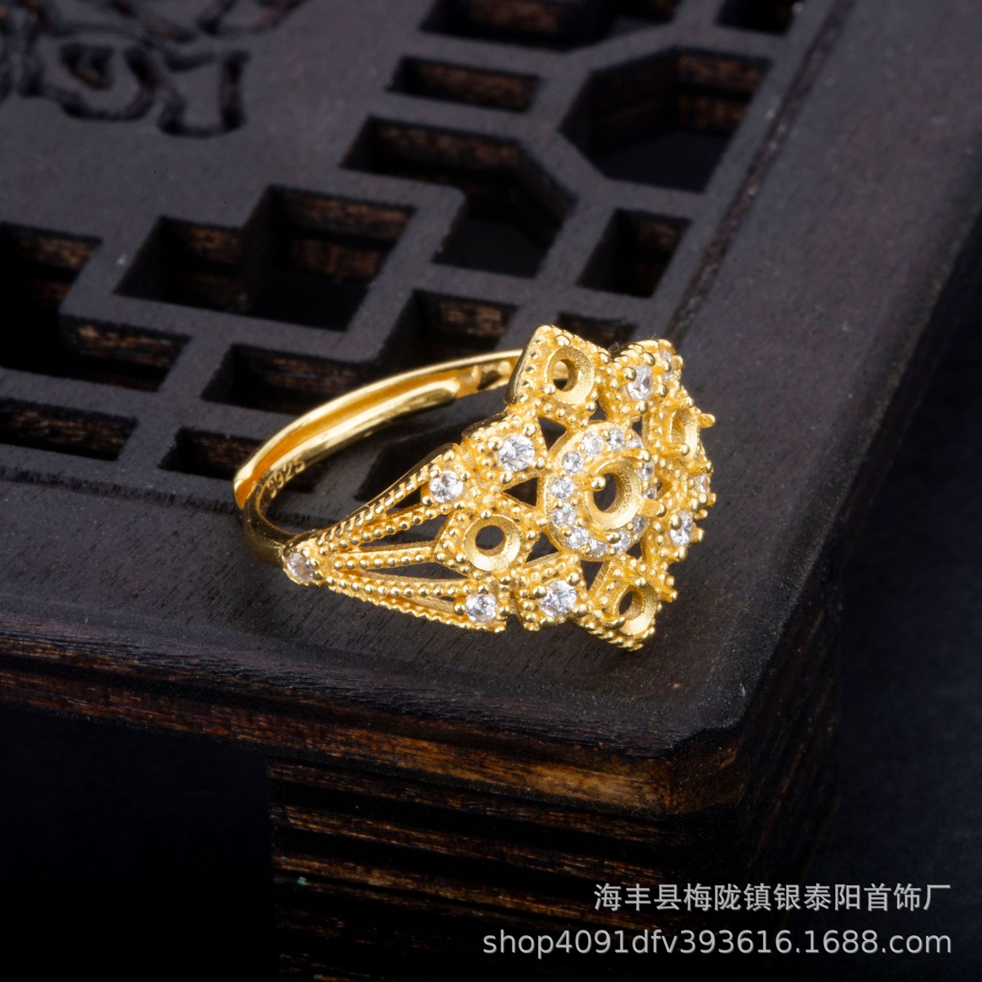 s925戒指银托精工简约时尚翡翠蛋面空托可调节未镶嵌豪华戒托
