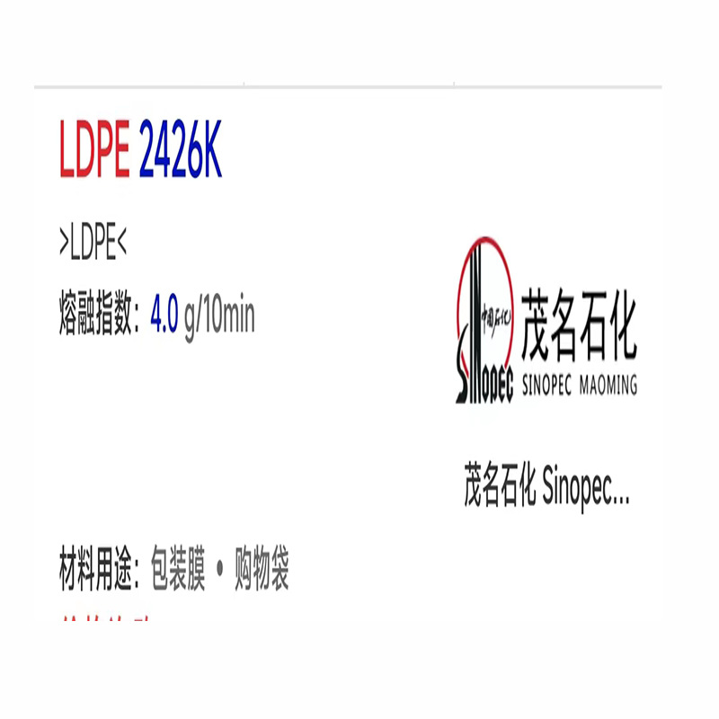 品名 | 低密度聚乙烯颗粒LDPE中石化茂名2426K包装膜购物袋951-050农用膜 | 厂家(产地) | 茂名 |