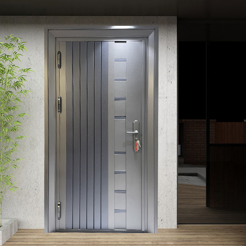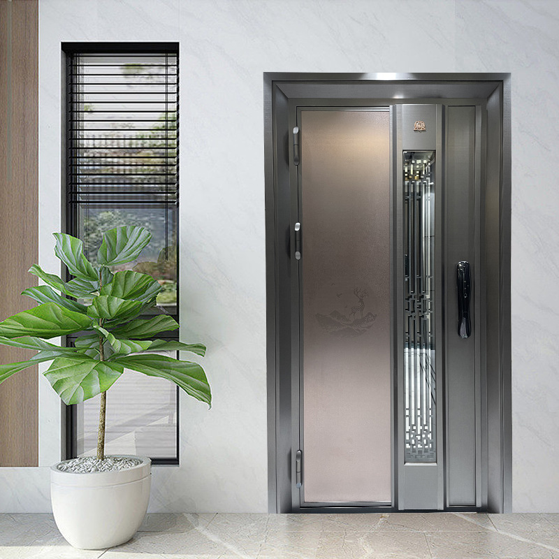 304不锈钢入户门 韩式通风推拉门小区商品房家用大门铝板防盗单门