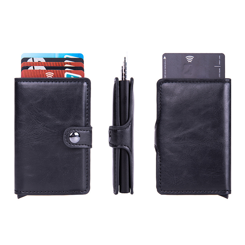 厂家批发pu碳纤维信用卡卡包零钱包金属自动弹出式RFID防盗卡片盒