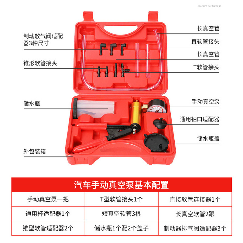 手动真空泵汽车刹车油修车工具箱小型抽打气正负两用铜芯吸力枪