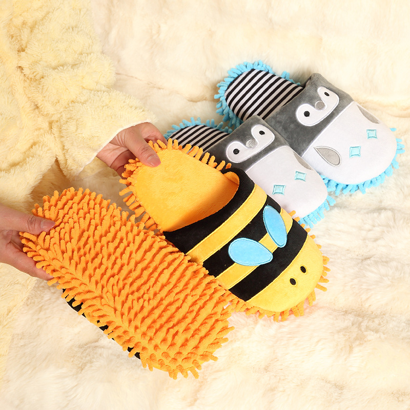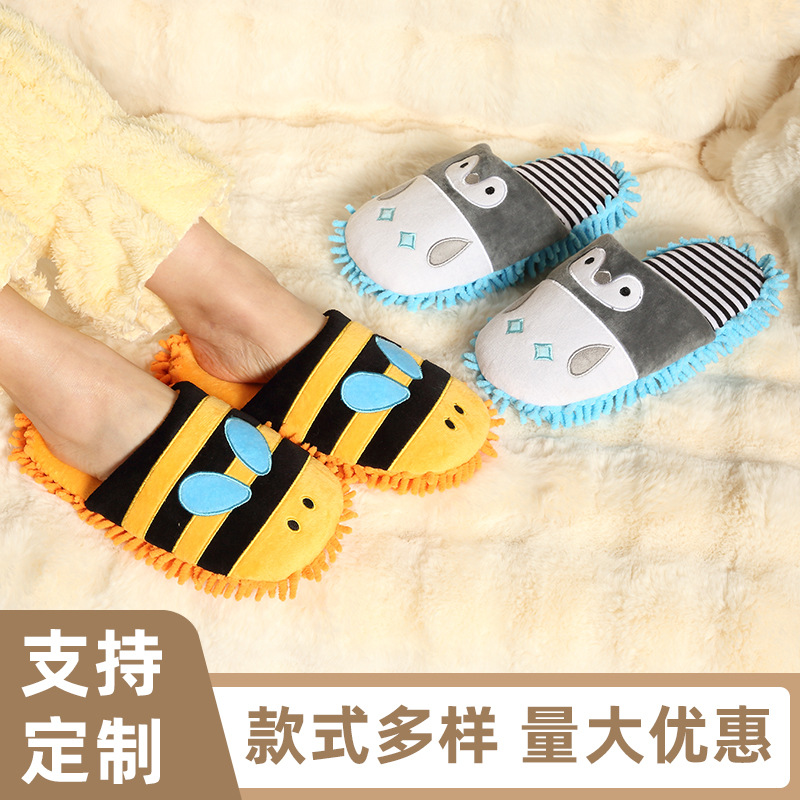 厂家批发室内冬季卡通动物懒人拖鞋 防滑保暖软底雪尼尔地板拖鞋