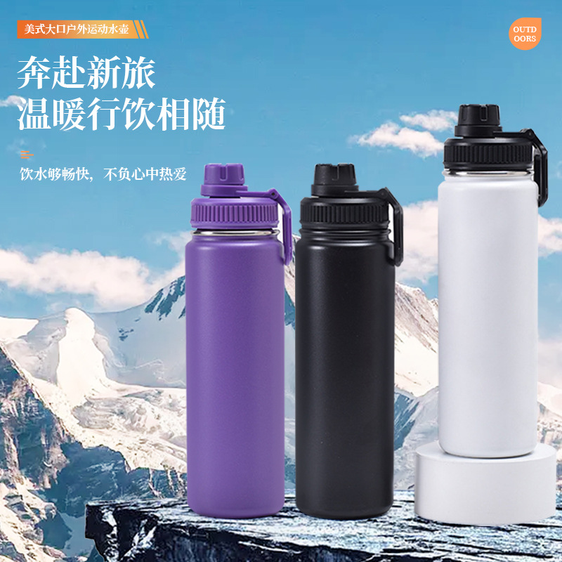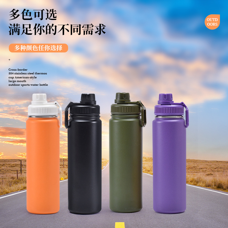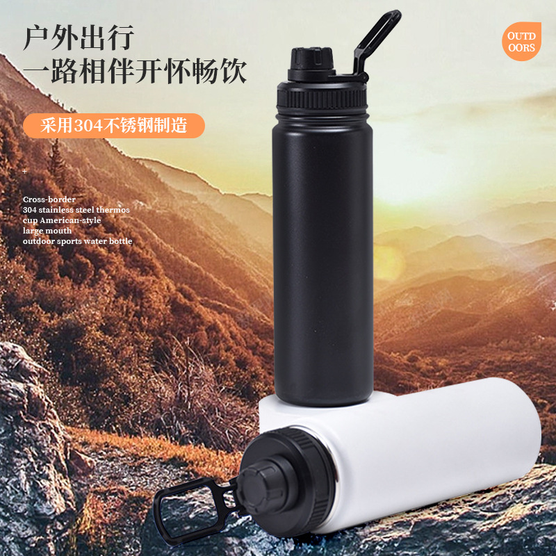 跨境新款304不锈钢750太空壶大容量户外运动水壶美式大口保温杯