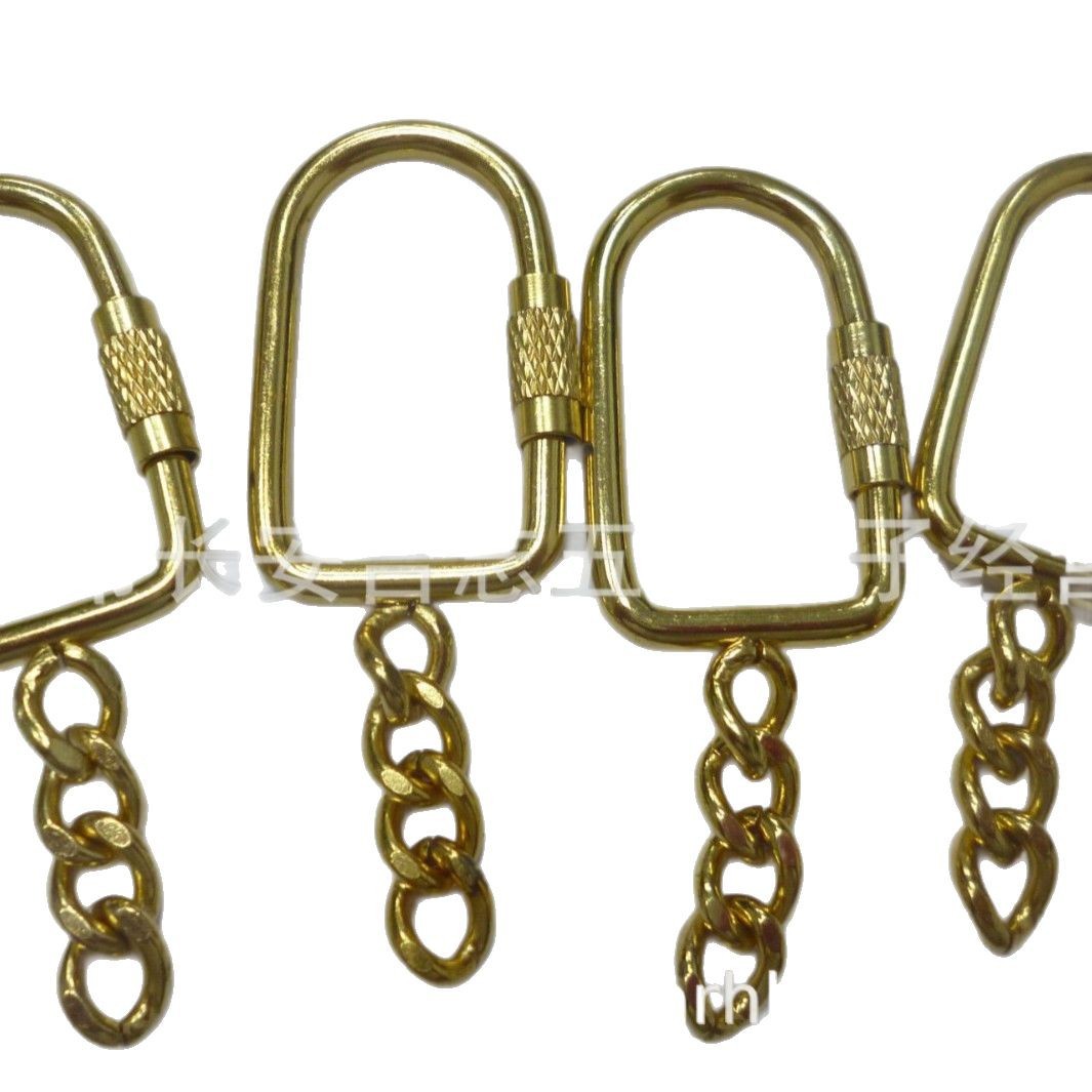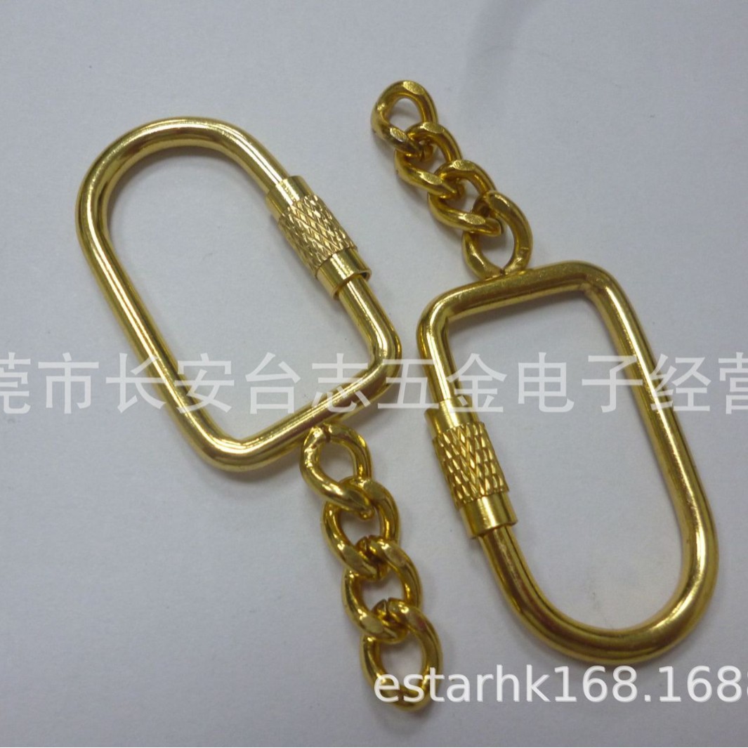 供应金属方形螺丝扣加链条金色螺丝锁扣五金青铜螺丝钥匙扣饰品螺