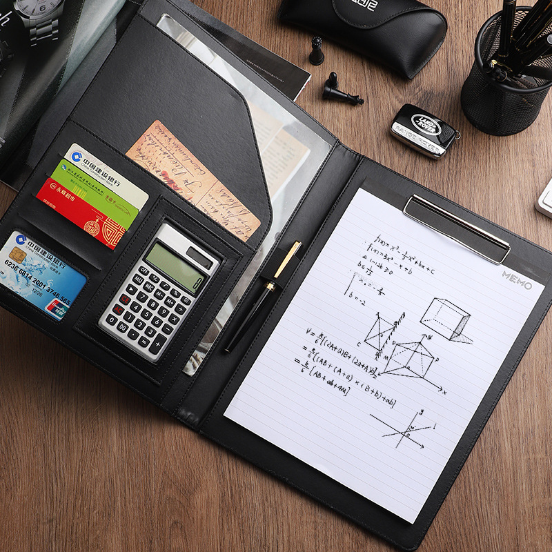 A4多功能文件夹带计算器商务办公谈单夹皮革经理夹量房本可加logo
