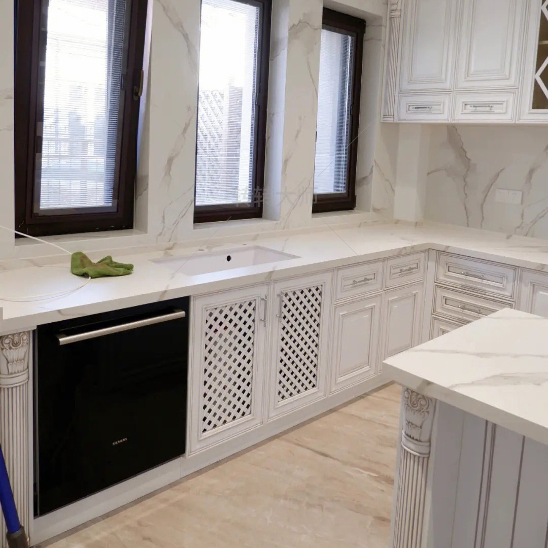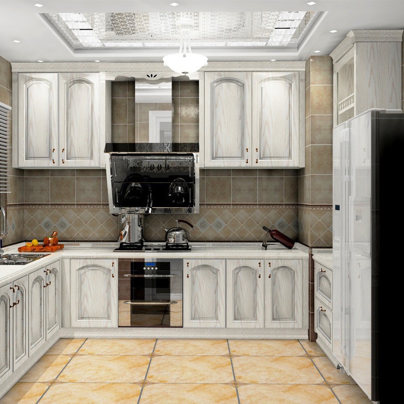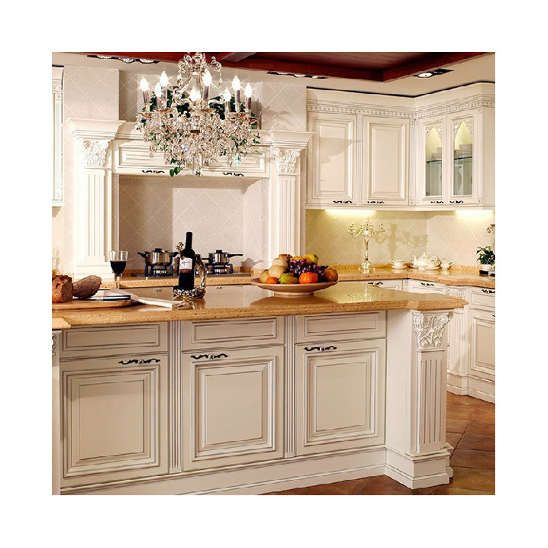 厂家定制欧式实木橱柜岛开放式厨房整体设计定做木纹柜门地柜吊柜
