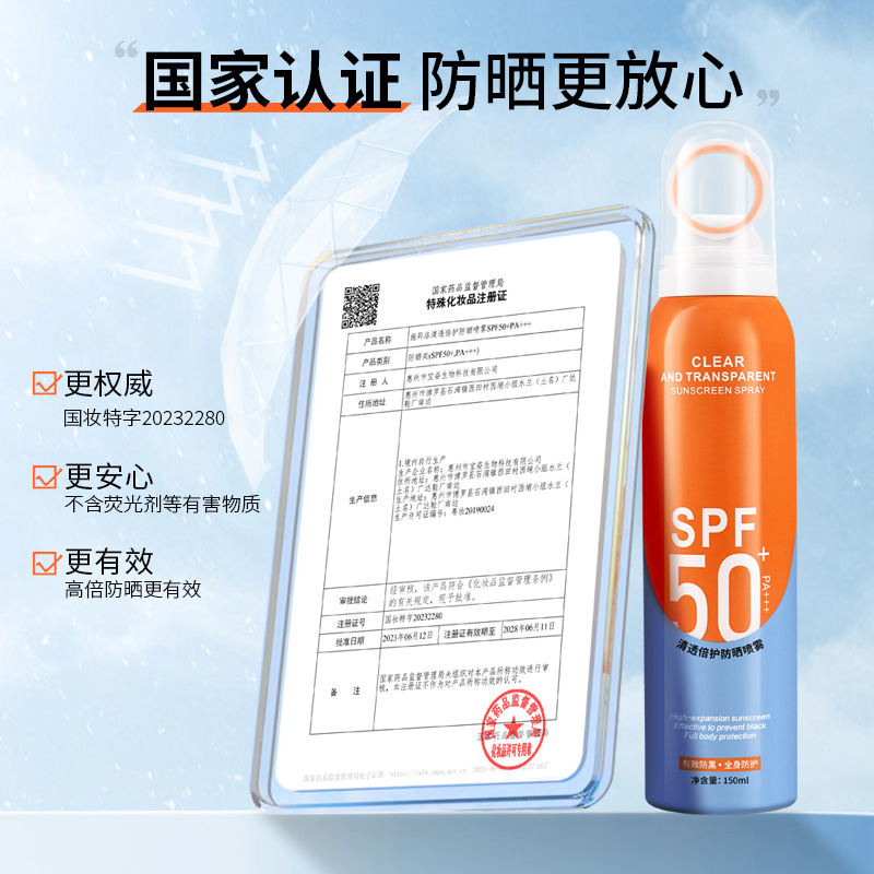 爆款尤一防晒喷雾SPF50+PA+++隔离紫外线男女通用全身防护小光圈