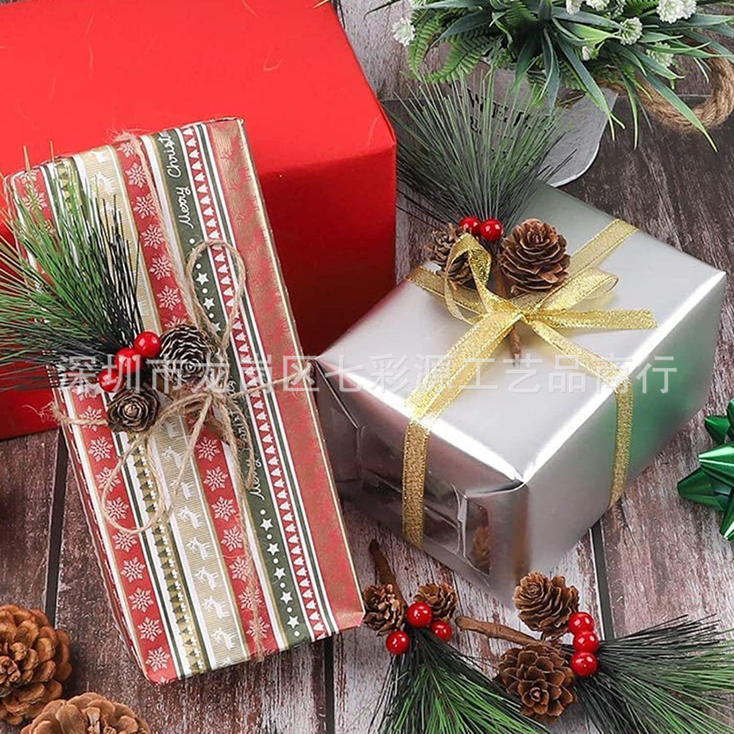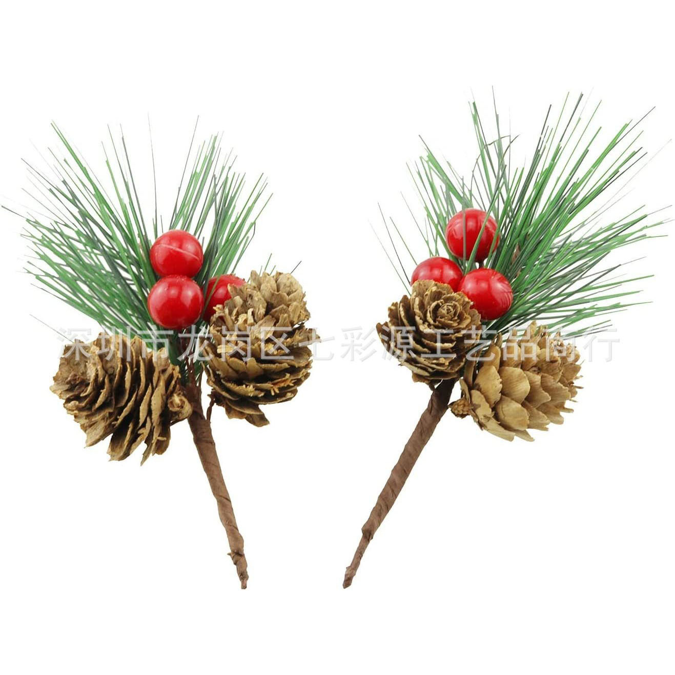 圣诞松针插枝圣诞树仿真松果浆果枝装饰跨境圣诞浆果红果花束配件