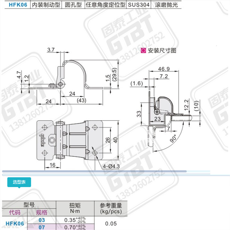 不锈钢阻尼合页任意随意停转轴扭矩铰链定位隐藏内装HG-TU/HFK06