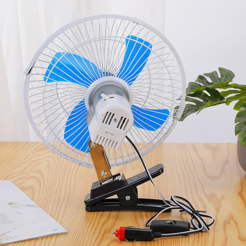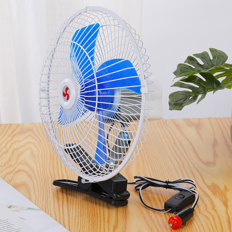 车载电风扇10寸 面包车大货车摇头制冷风扇 12V金属带夹全封风扇
