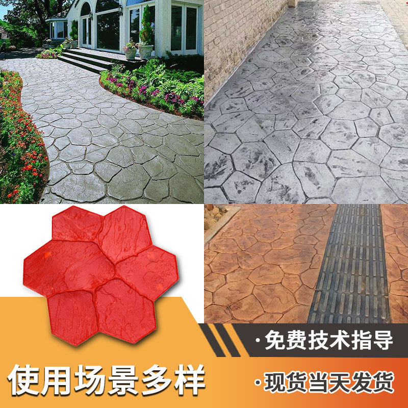 水泥路面压花模具压印地坪彩色混凝土仿石地面压模施工院子园林