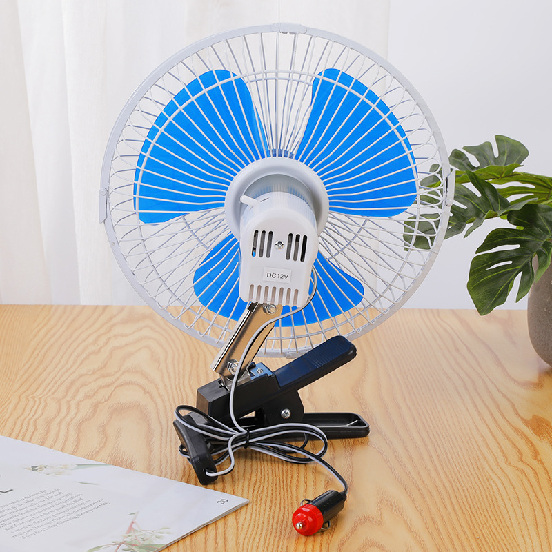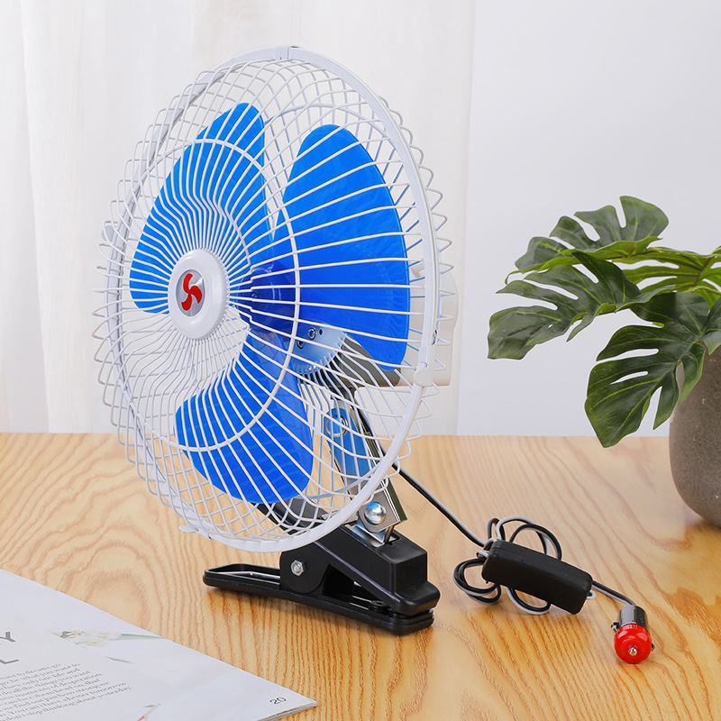 10寸金属带夹子车载电风扇12V24V汽车货车全封摇头制冷风扇