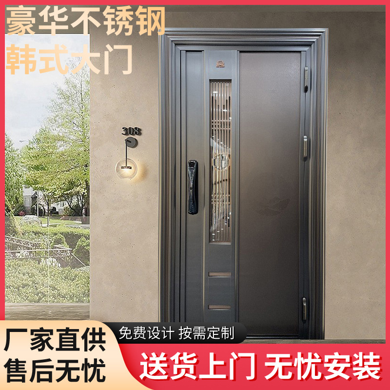 佛山厂家新中式入户门不锈钢防盗门入户门家用单开门不锈钢韩式门