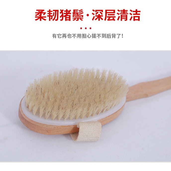 长柄可拆卸浴刷木制洗澡刷猪鬃毛沐浴刷长柄木质搓背搓澡器洗浴刷