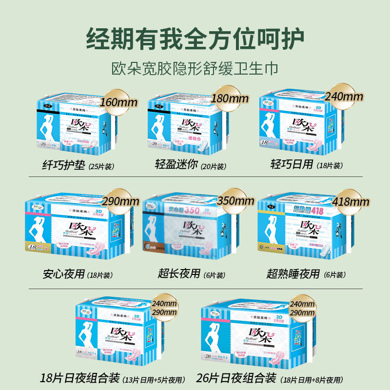 | 产品加工 | 夜用日用经期护理卫生巾OEM加工定制 | 产品主营 | 欧朵舒缓3D立体防侧漏卫生巾批发代理 |