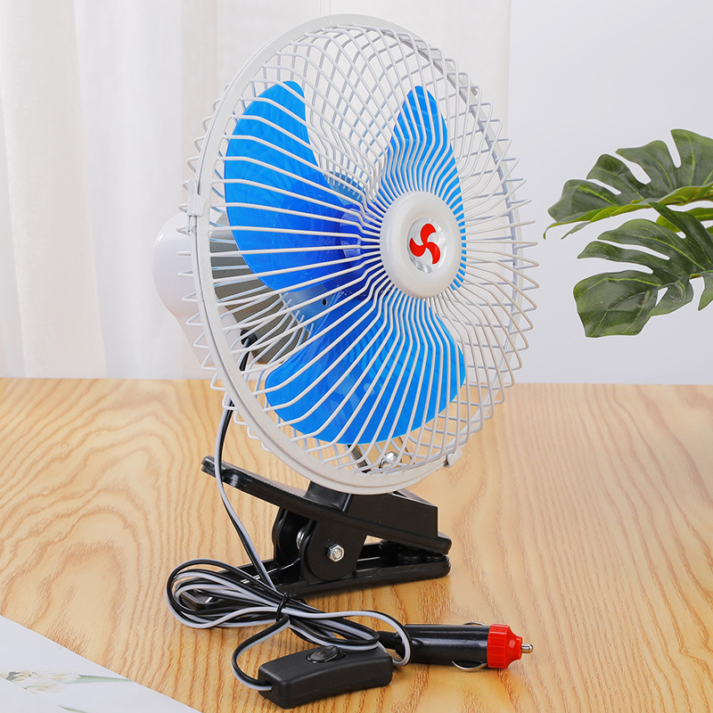 现货10寸小型车载电扇带夹子汽车风扇车载风扇全封可摇头制冷风扇
