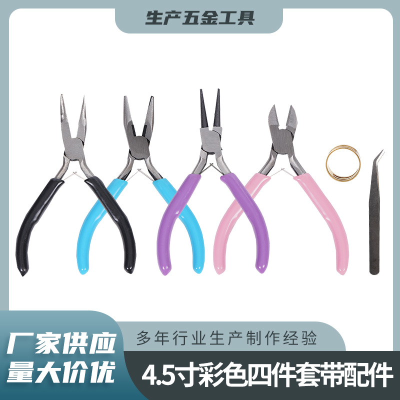 4.5寸彩色四件套带配件斜嘴钳圆嘴钳尖嘴钳弯嘴钳珠宝DIY手工钳