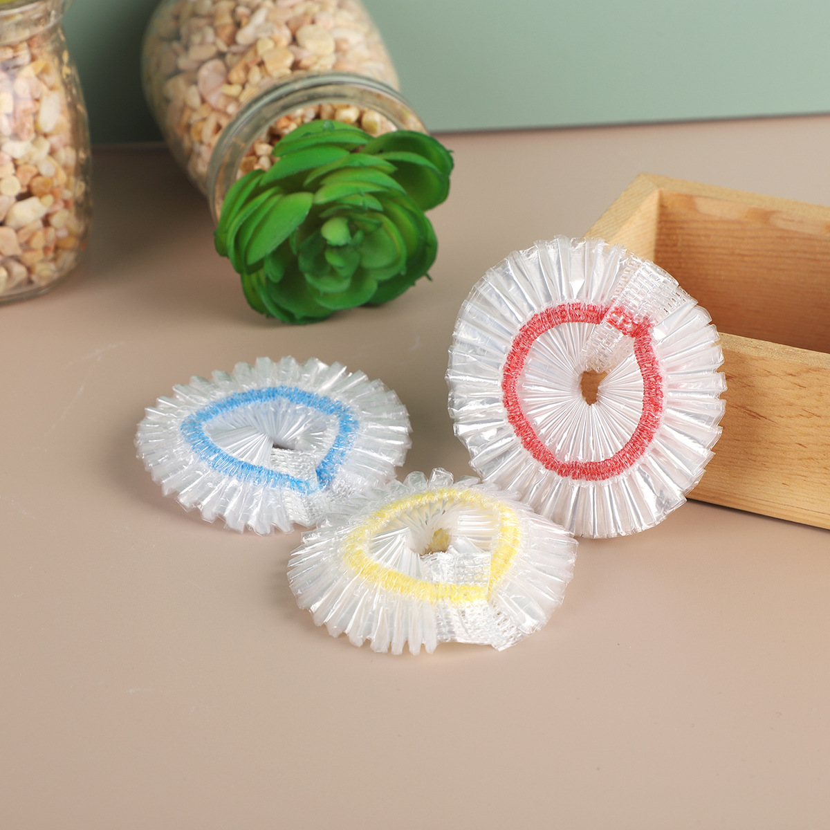 材质 | PE | | 货号 | 彩条浴帽 |