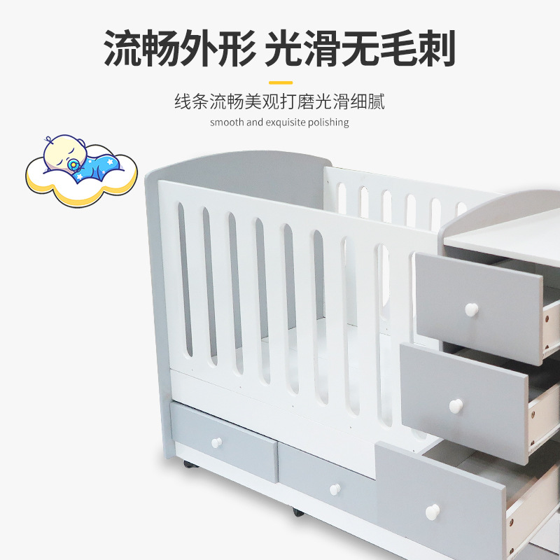跨境专供婴儿床松木无漆宝宝bb摇篮多功能儿童儿可移动拼接大床