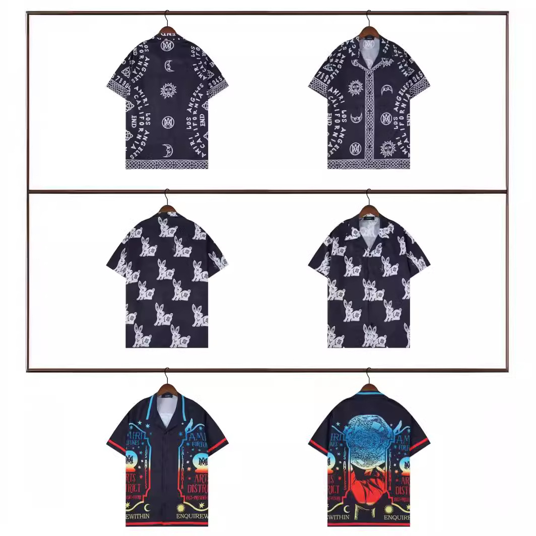 夏季新款amiri短袖衬衫 经典字母logo印花Amiri 潮牌男女衬衫衬衣