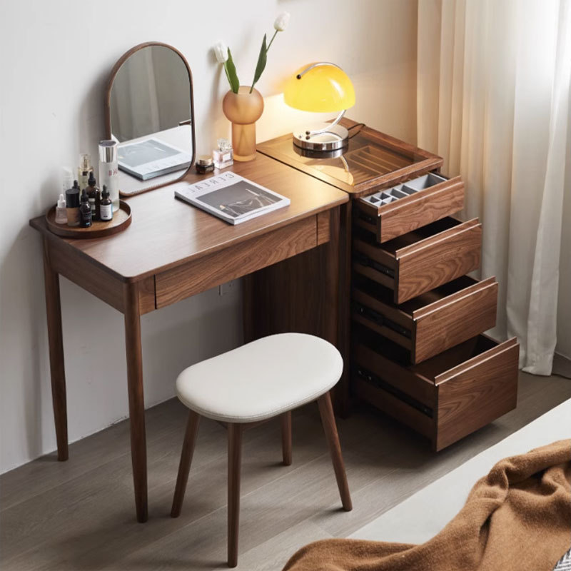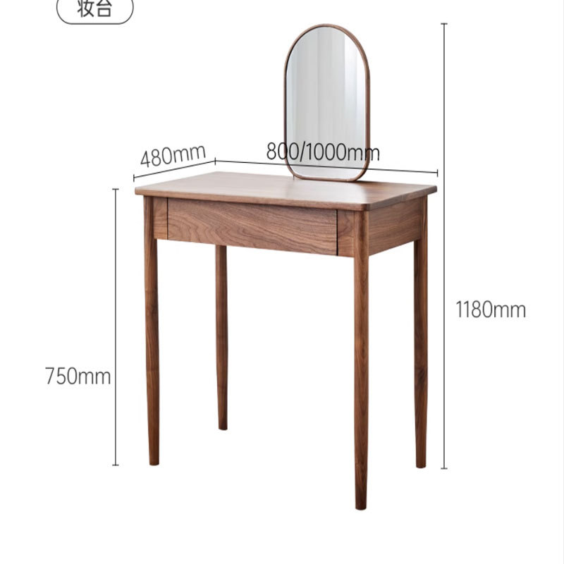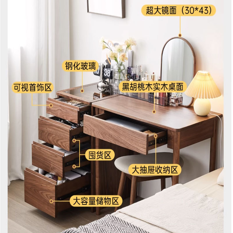 北欧黑胡桃木梳妆台卧室家具实木妆台小收纳柜一体化妆桌现代简约