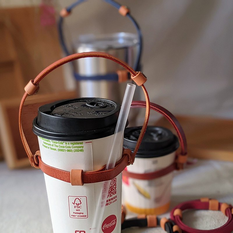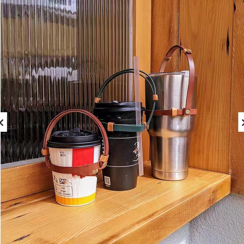 皮革手环杯套多功能皮质奶茶打包杯套手环手链自由调节咖啡手提套
