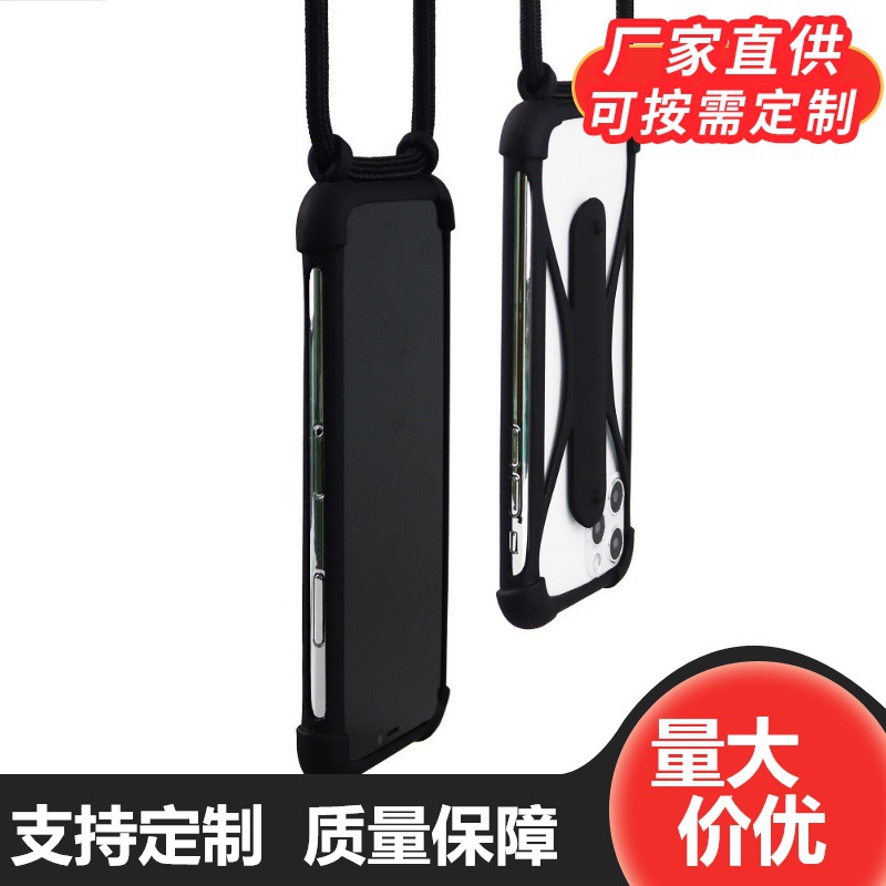 硅胶挂绳手机壳斜挎四角防摔保护套可伸缩手机挂绳支架手机保护套