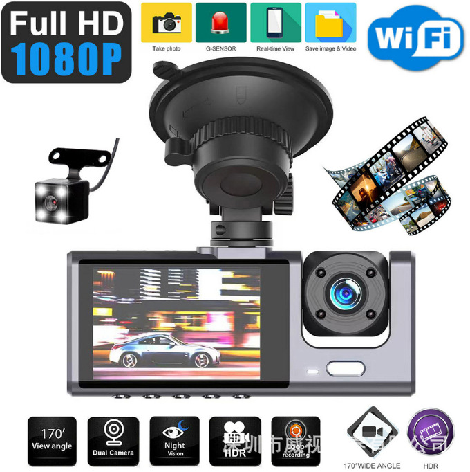 2寸屏360行车记录仪3路高清1080P三镜头停车监控带夜视车载DVR