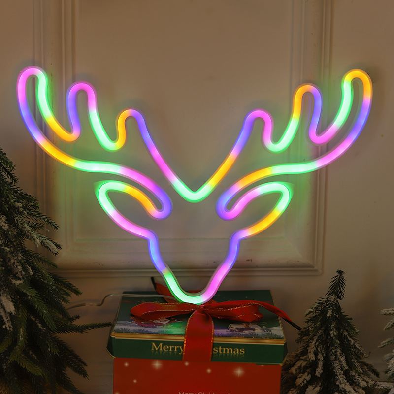 跨境LED圣诞节霓虹灯鹿头造型灯小鹿挂墙装饰灯厂家直供发光鹿灯