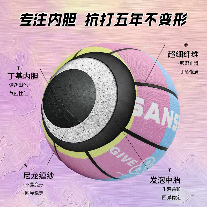 批发三盈7号成人篮球专业比赛高弹力彩虹篮球 职业耐磨户外比赛球