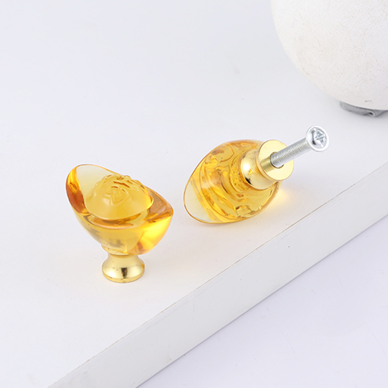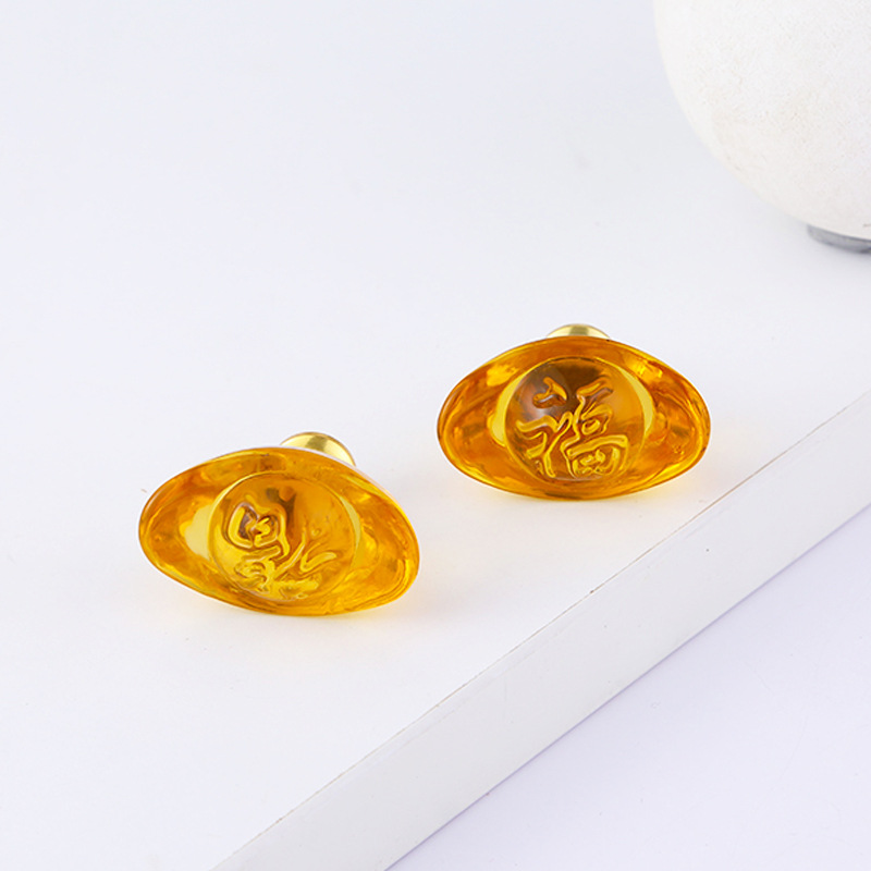 厂家批发中式金色元宝水晶拉手玻璃单孔衣柜橱柜30mm拉手家具配件