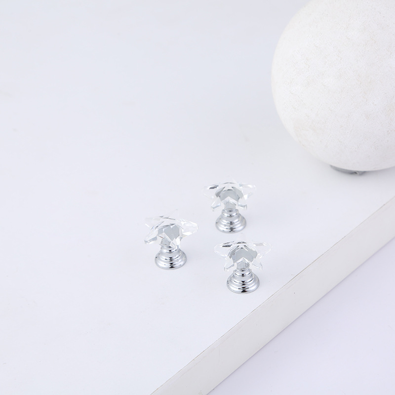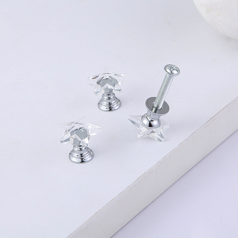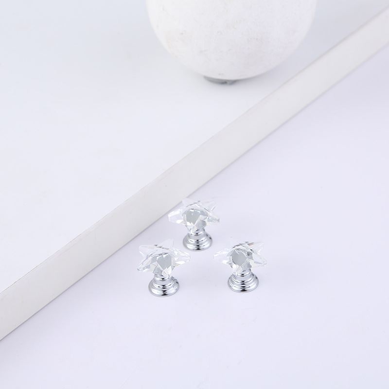 厂家批发五角星钻石型水晶拉手化妆盒抽屉首饰礼盒玻璃小拉手配件